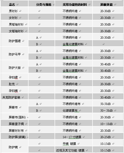 此外,上海研制成功采用多离子织物和金属化纤维织物的电磁辐射屏蔽材料。多离子织物是采用目前国际最先进的物理和化学工艺,对纤维进行离子化处理。该产品以吸收为主,将有害的电磁辐射能量通过织物自身的特殊原理转变成热能散发掉,从而避免了环境二次污染、净化了空气。由于织物中含有大量金属阳离子可起到杀菌除臭作用,对皮肤无刺激,有助人体表皮微循环。同时具有防静电、防部分X射线及紫外线等功能。多离子织物是目前国际上屏蔽低、中频段电磁辐射最先进的民用防护材料。